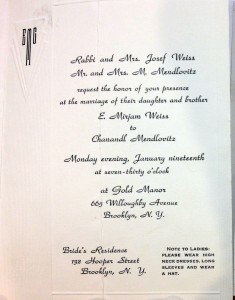 Anyway, he apparently did pretty well out of it; the daughter got married in due course, and note the fancy invitation with embossing and monogram, and the wedding venue was Gold Manor, apparently a Simcha Palace.